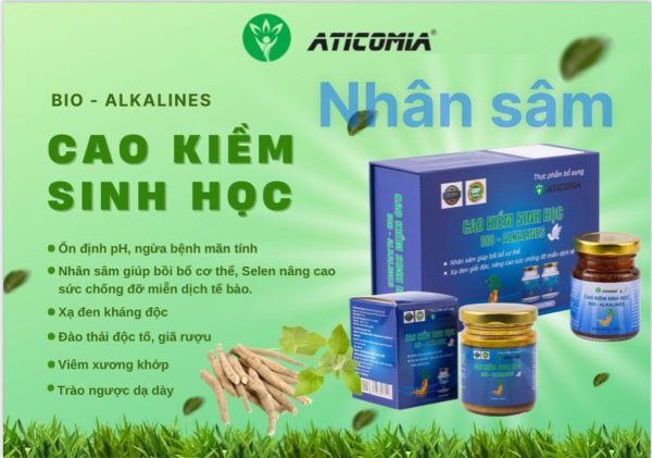 Cao Kiềm Sinh học Nhân sâm Bio Alkalines được làm từ các chất hữu cơ, với công nghệ nano thấm sâu vào cơ thể giúp phục hồi cơ chế cân bằng độ pH của cơ thể nhanh và giải quyết được các tình trạng sức khỏe liên quan đến mất cân bằng độ pH của cơ thể như trào ngược dạ dày, u hạch, ung thư, tiểu đường, mỡ máu…